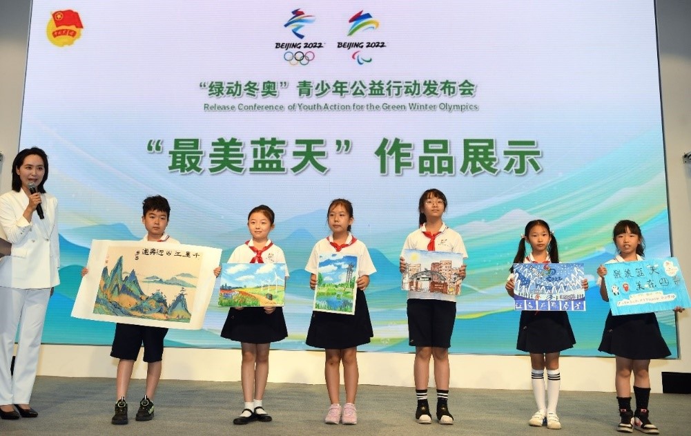 活动吸引了大中小学的学生们共同参与。活动现场,同学们展示了自己创作的“最美蓝天”绘画作品,来自青少年朋友的“最美蓝天”Vlog作品也在现场做了精彩呈现。青少年发表了集体宣言:从我做起,绿色行动,绿色生活,关注生态文明,助力低碳冬奥,为美丽北京加油!为绿色冬奥加油!