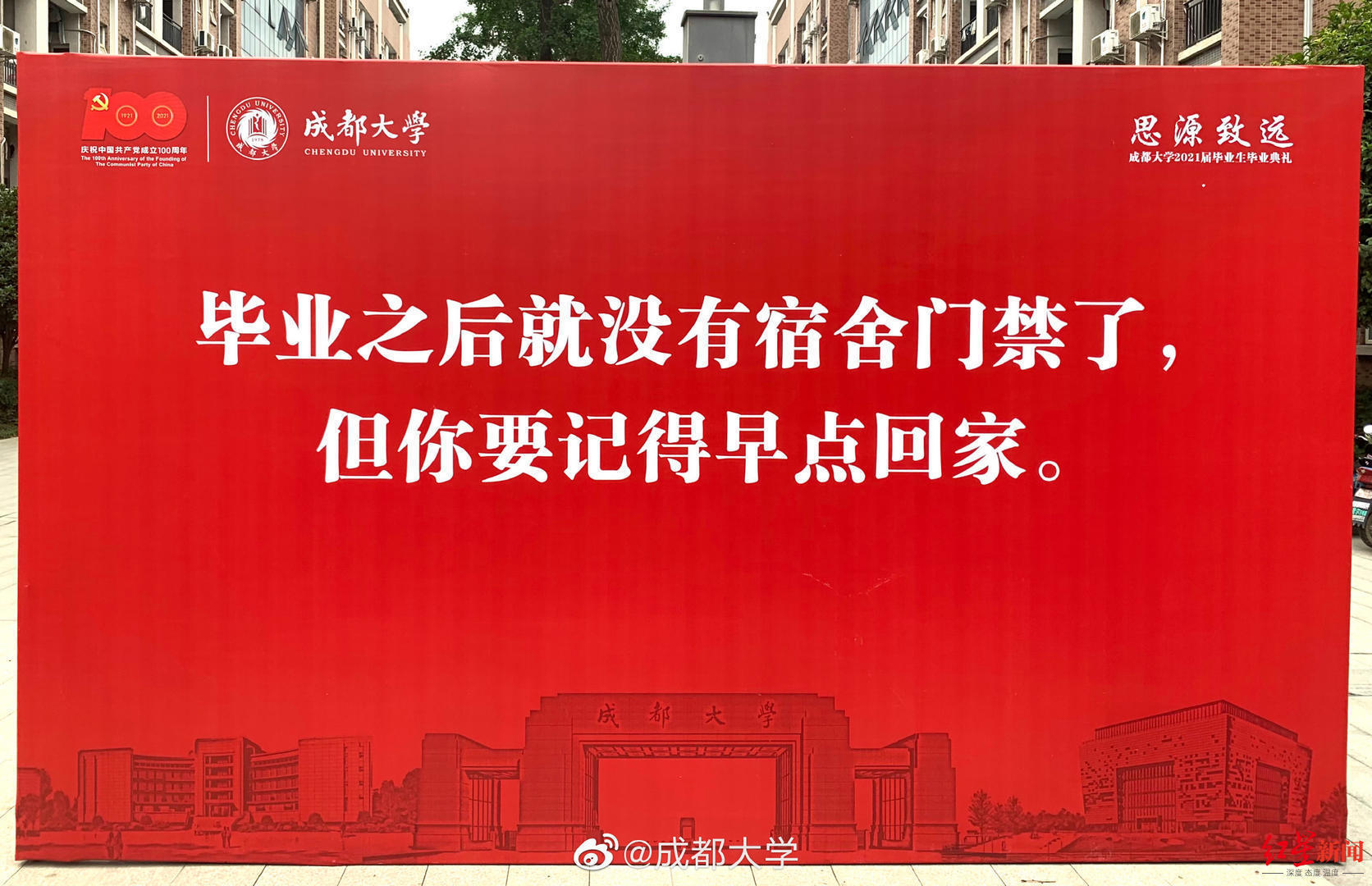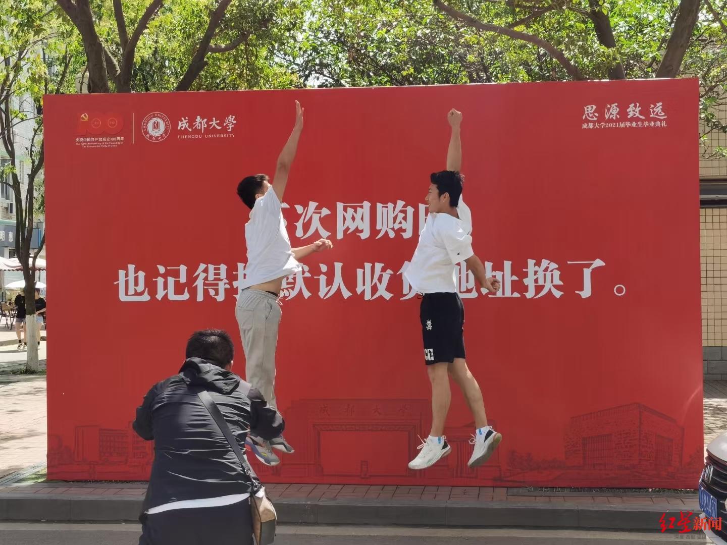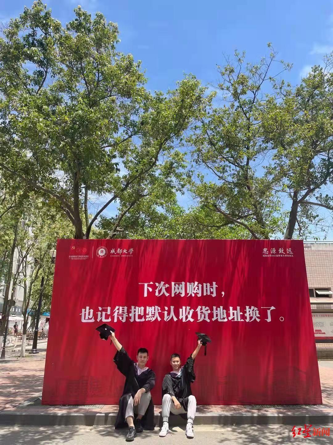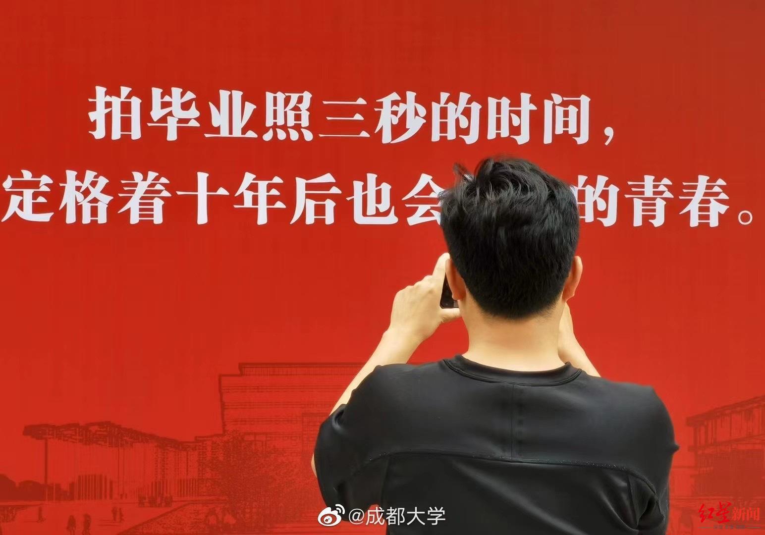 再过几天,成都大学食品与生物工程学院大四学生敬宇即将离开她学习生活了4年的地方。最近走在校园里,她和同学们发现宿舍楼下、学生活动中心、图书馆等熟悉的地方都摆放上了红色醒目的展板,上面写着不同的毕业寄语,让她感触万分。“比如说宿舍楼下,摆放的‘毕业之后就没有宿舍门禁了,但你要记得早点回家’这一句寄语就很触动我。”敬宇说,文案很走心,很感动,看到这句话让她想起4年的校园生活,成大这个家一直温暖保护着同学们,现在要离别了,还给了大家很多寄语。