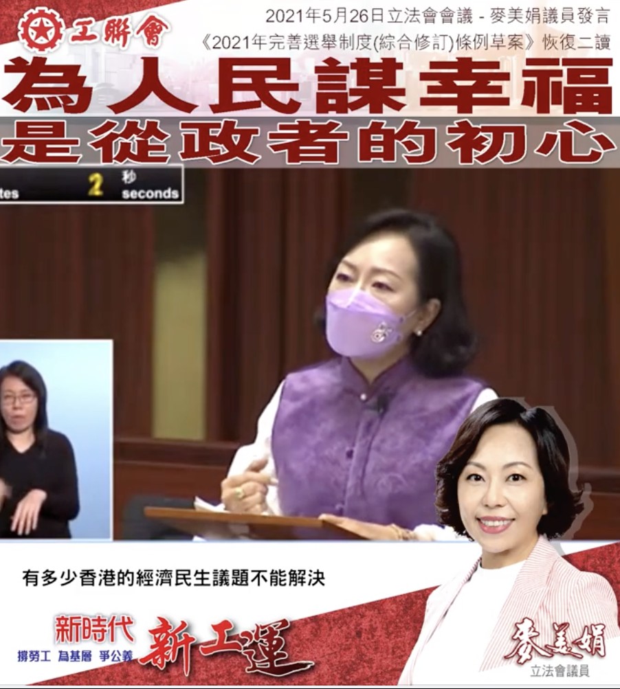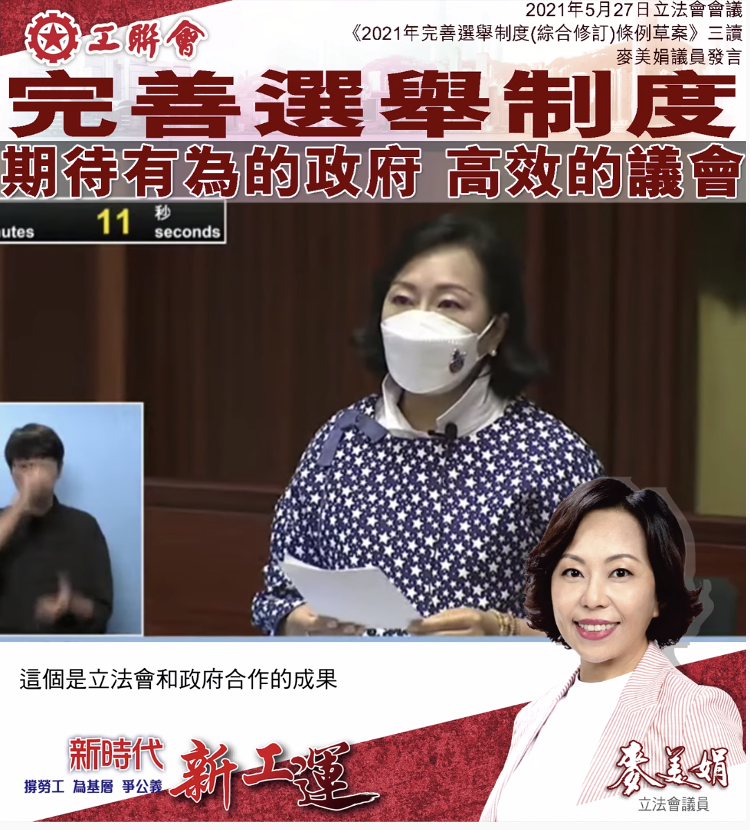 麦美娟在香港特区立法会三读《2021年完善选举制度(综合修订)条例草案》时发言