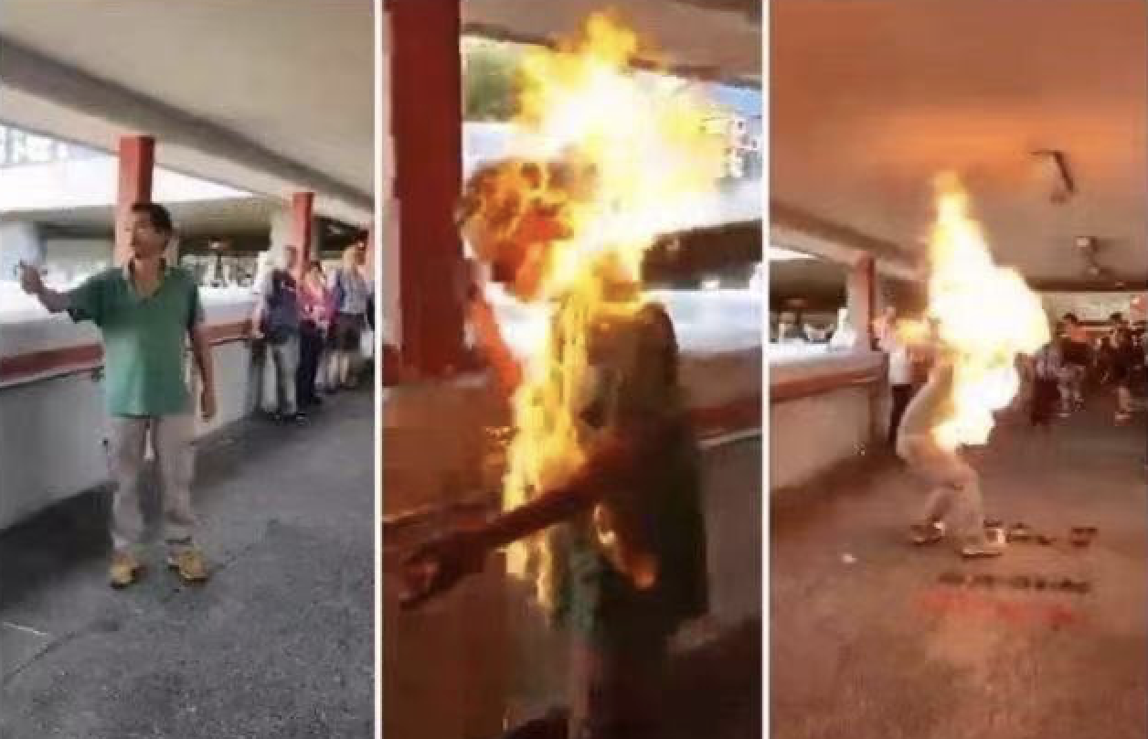 “李伯”遭一名暴徒泼汽油浑身起火