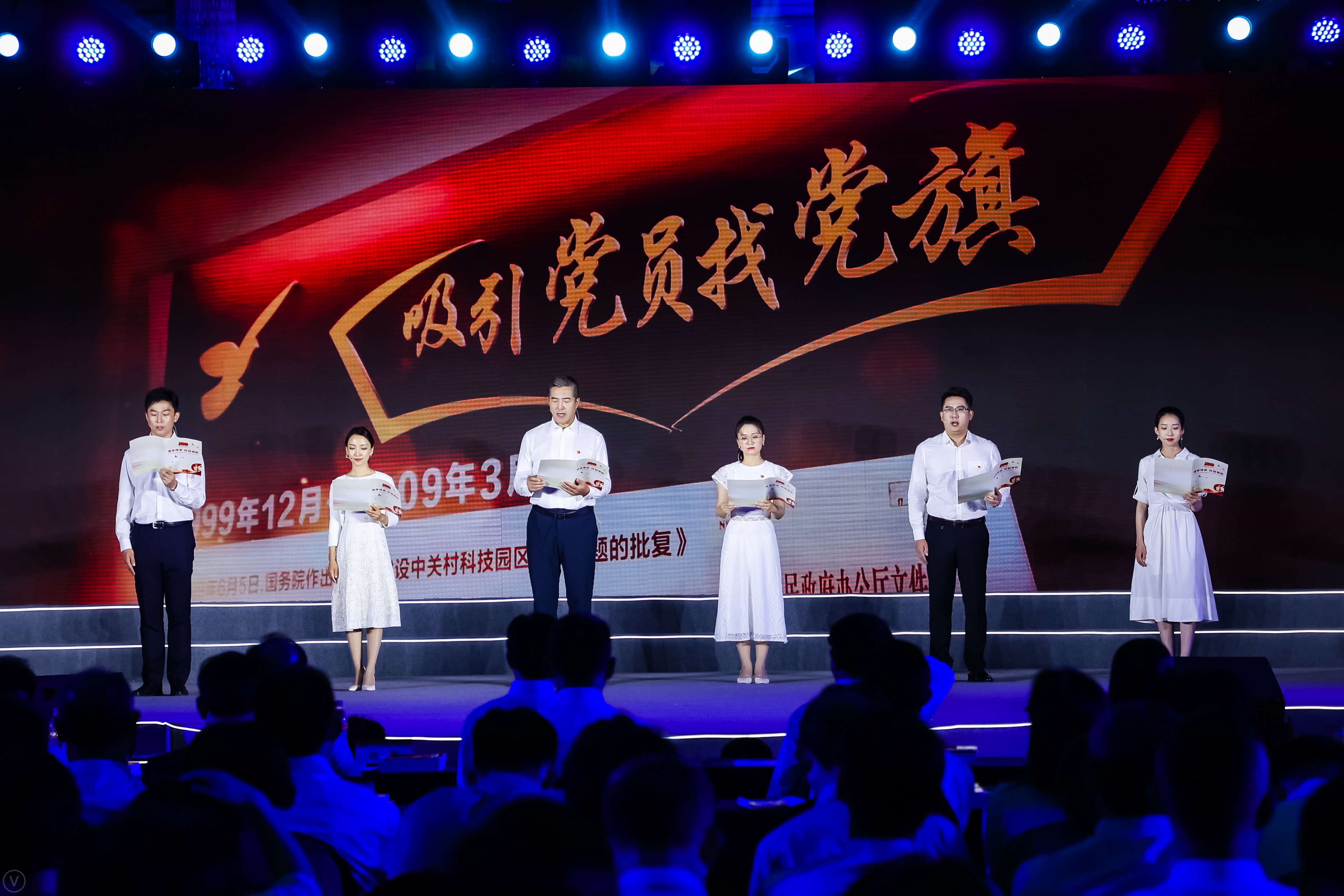 活动现场,在中关村科技企业千余职工用数十万针绣下的一幅巨幅党旗下,新加入中国共产党的党员进行了庄重的入党宣誓仪式。现场揭晓的中关村科学城“创新工匠”名单中,“80后”占比过半,青年科技工作者已成为科技创新队伍中最具活力的生力军。近年来,小米、商汤、旷视科技、便利蜂、拉卡拉等一批独角兽企业纷纷成立党委,园区纳税200强企业中党组织覆盖率达98%,形成党建引领新经济发展新格局。