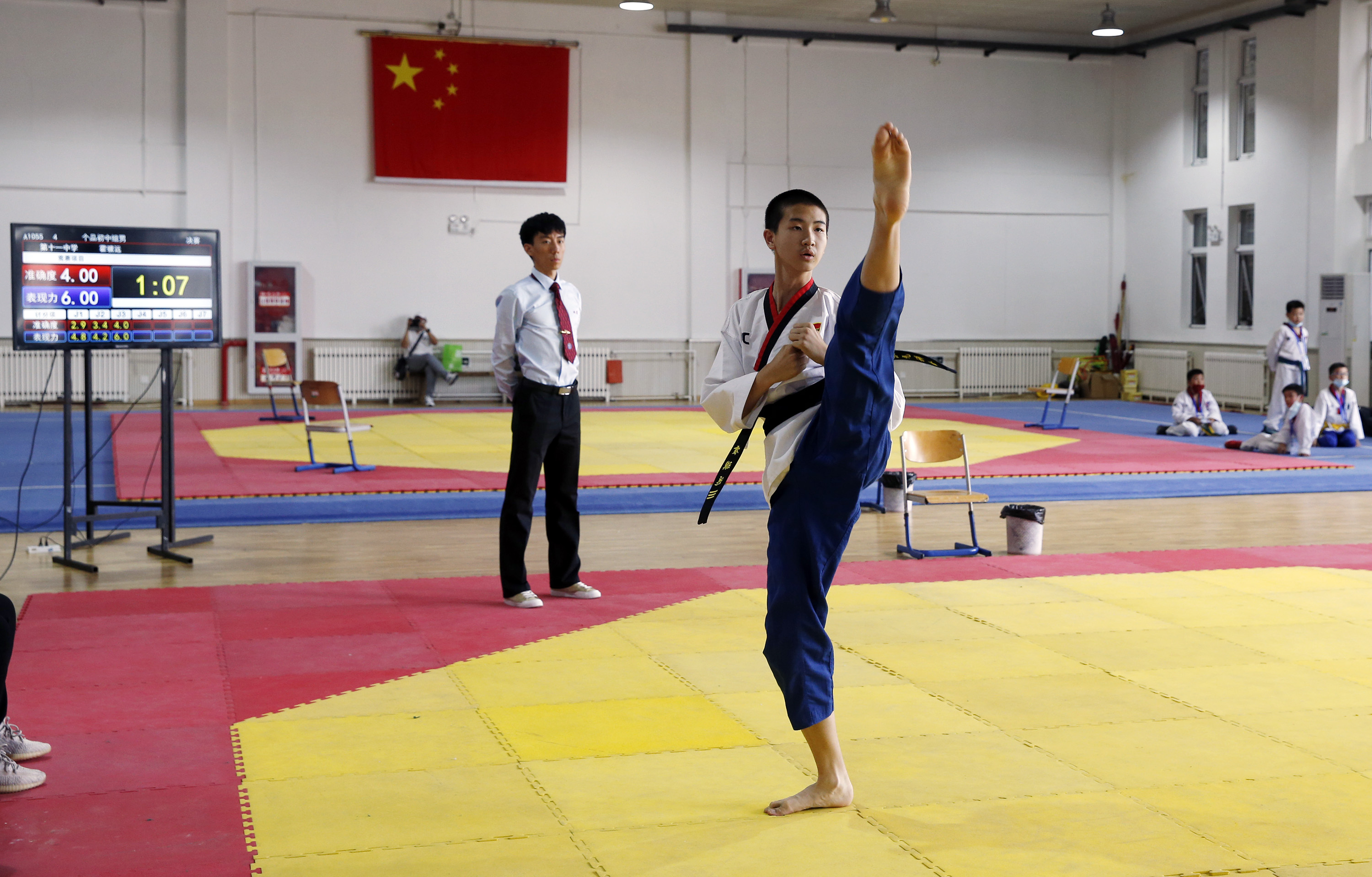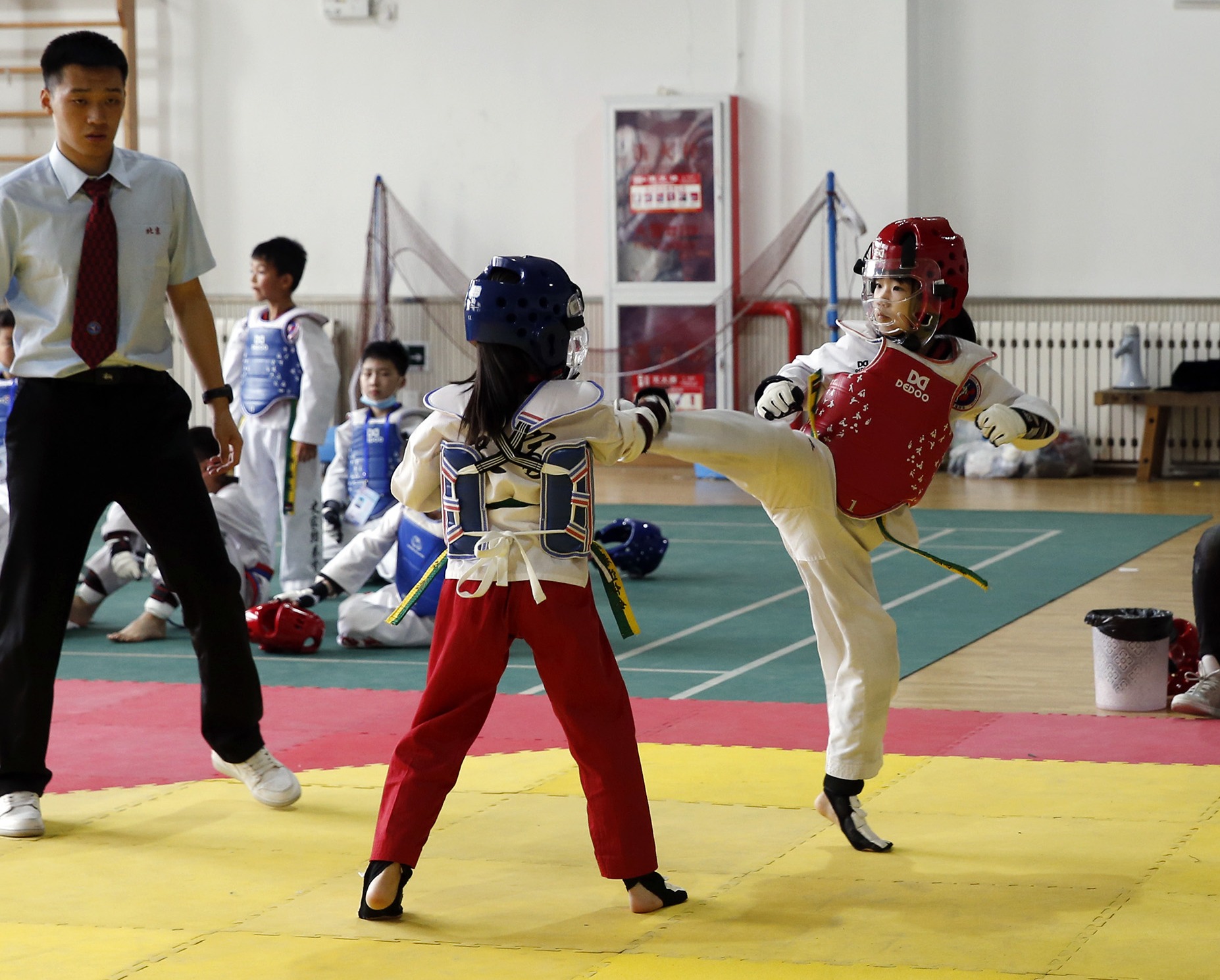 跆拳道是中国代表团在奥运会上的“夺金”项目,东城区教委、东城区体育局非常重视跆拳道项目的普及和推广,目前,东城区已有近30所中小学在校园内开设了跆拳道项目,参与跆拳道训练的学生越来越普及,竞技水平逐渐提高。
