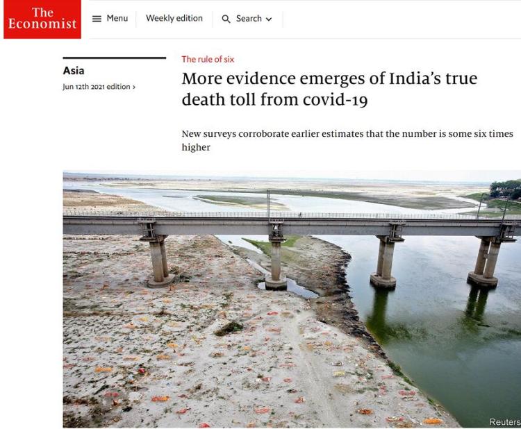 印度疫情形势严峻,确诊病例仅次于美国。不过英国《经济学人》12日的一篇文章透露出一个更可怕的信息:印度新冠死亡病例的实际数量可能是官方公布数量(超35万例)的5-7倍。不过这一说法随即被印度政府否认。