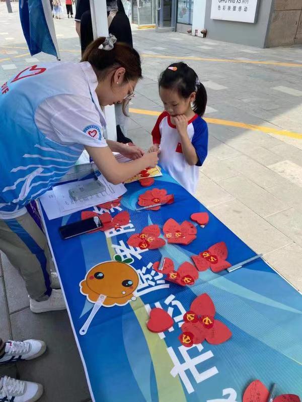 在林校路街道大悦春风里城市志愿服务站点,来自北京建筑大学的青年志愿者开展“喜迎建党百年 我为首都添光彩”主题活动,邀请群众参与党史知识问答、向党说句心里话等活动,得到群众的积极参与。