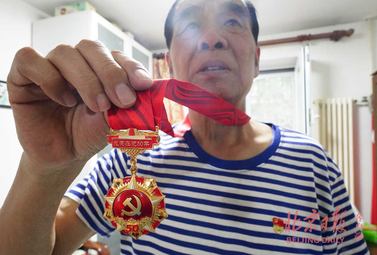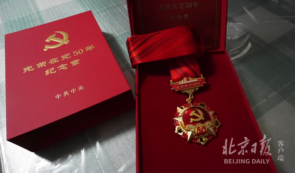 6月14日,家住朝阳区安贞街道外馆社区55年党龄老党员颜国樑在端午节当天收到了社区党委首批颁发的“光荣在党50年”纪念章,成为庆祝建党百年的一份珍贵纪念。