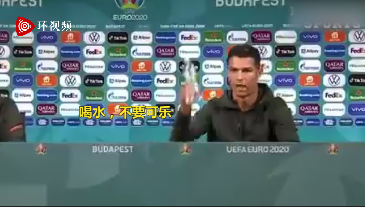 欧洲杯赛前新闻发布会出现这一幕。综合《每日邮报》、《赫芬顿邮报》报道,在当地时间6月14日的发布会上,C罗“愤怒”挪开桌上两瓶可乐,随后拿来一瓶水说,“喝水,不要可乐”。