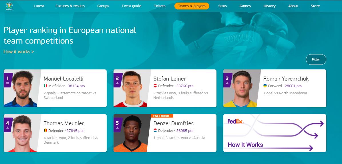 邓弗里斯目前在欧足联官网根据大数据计算的球员大排名中名列第五位。