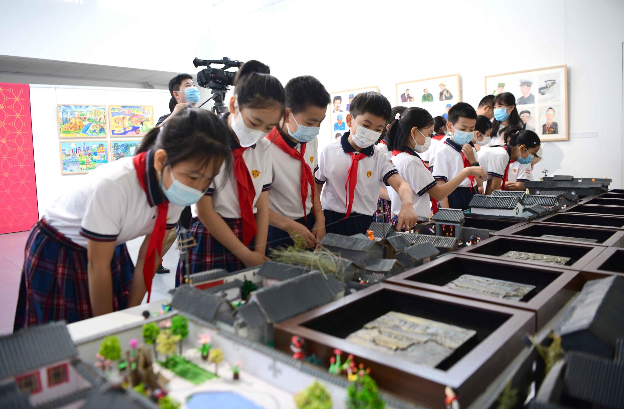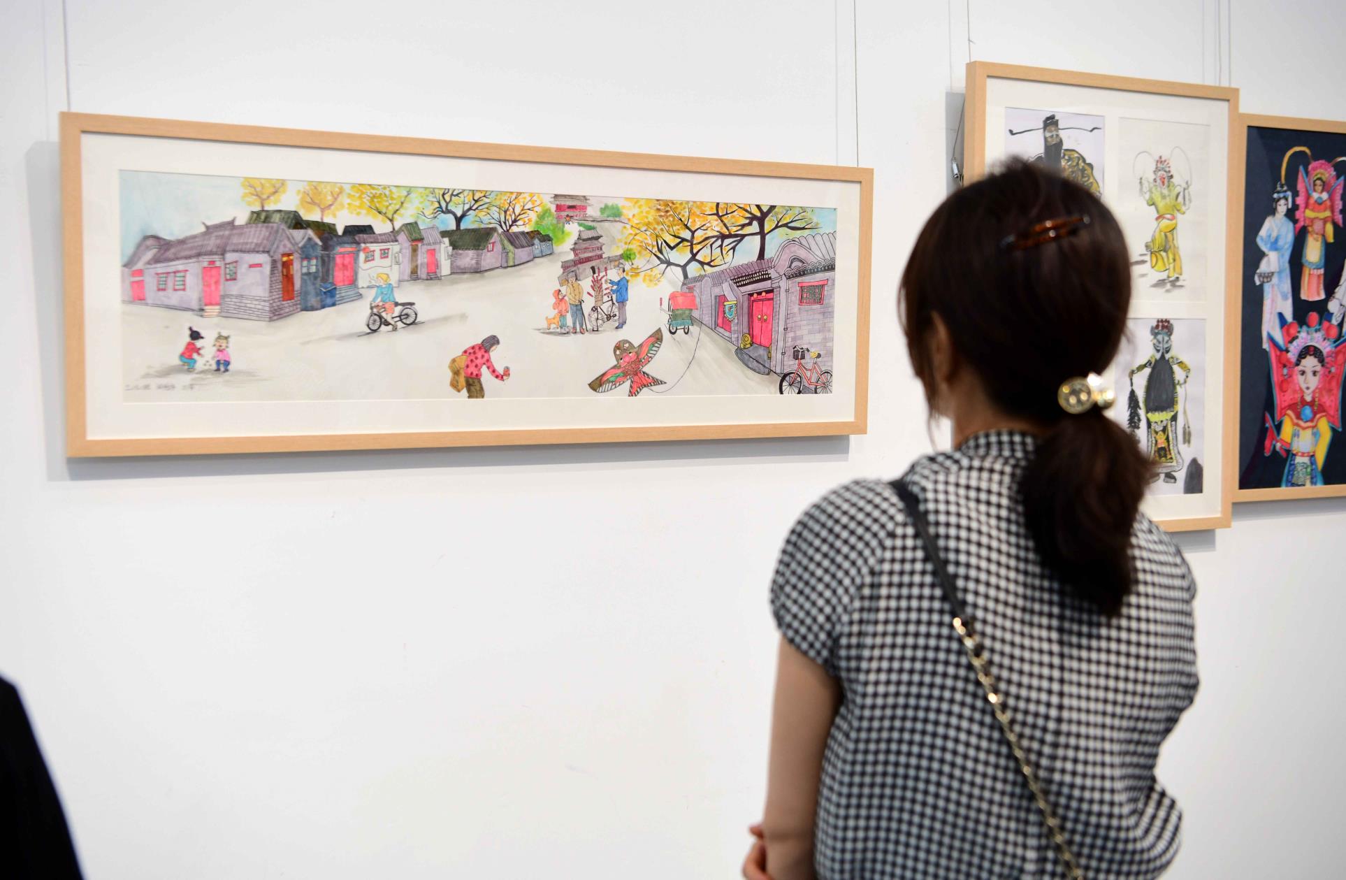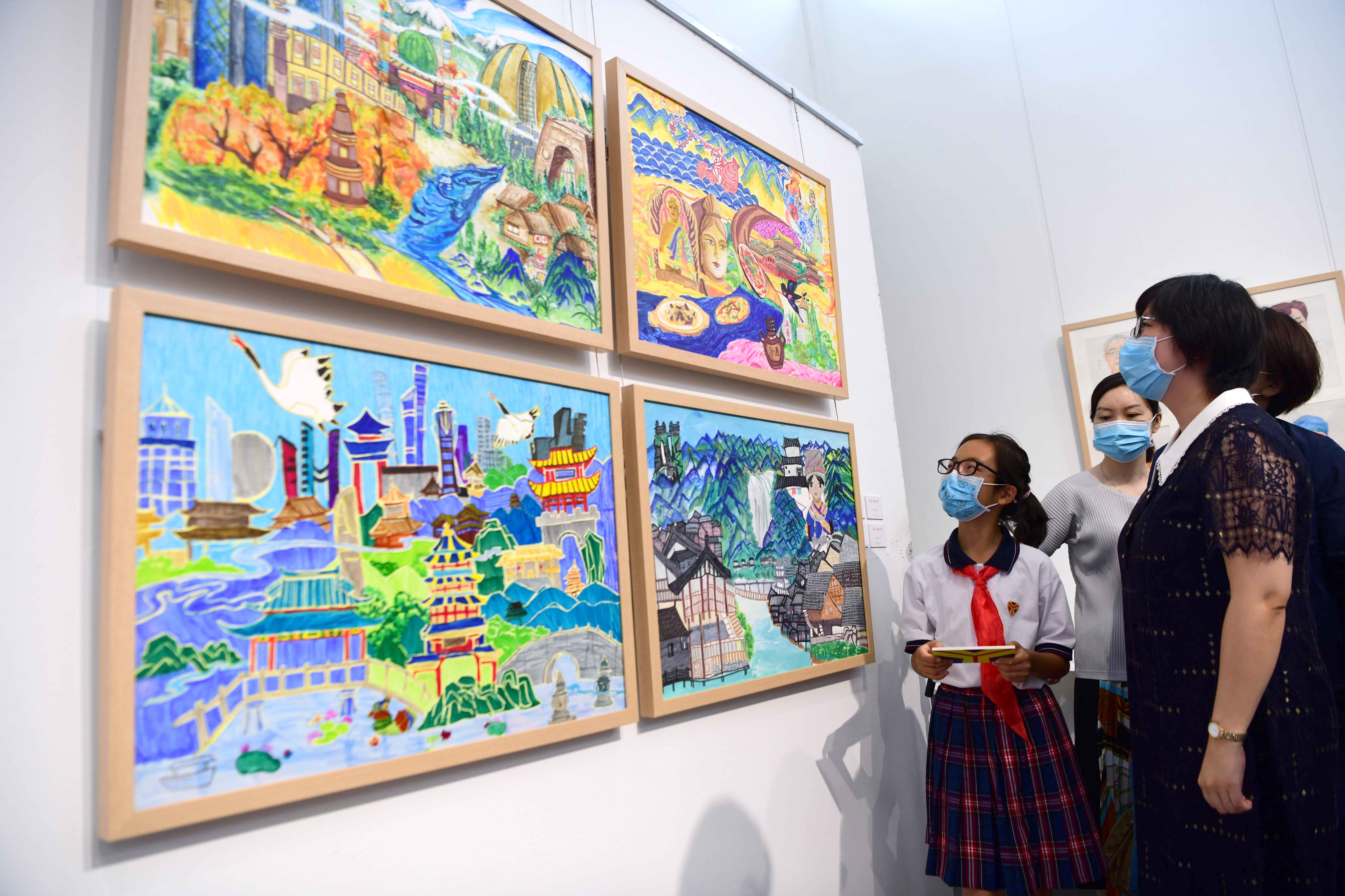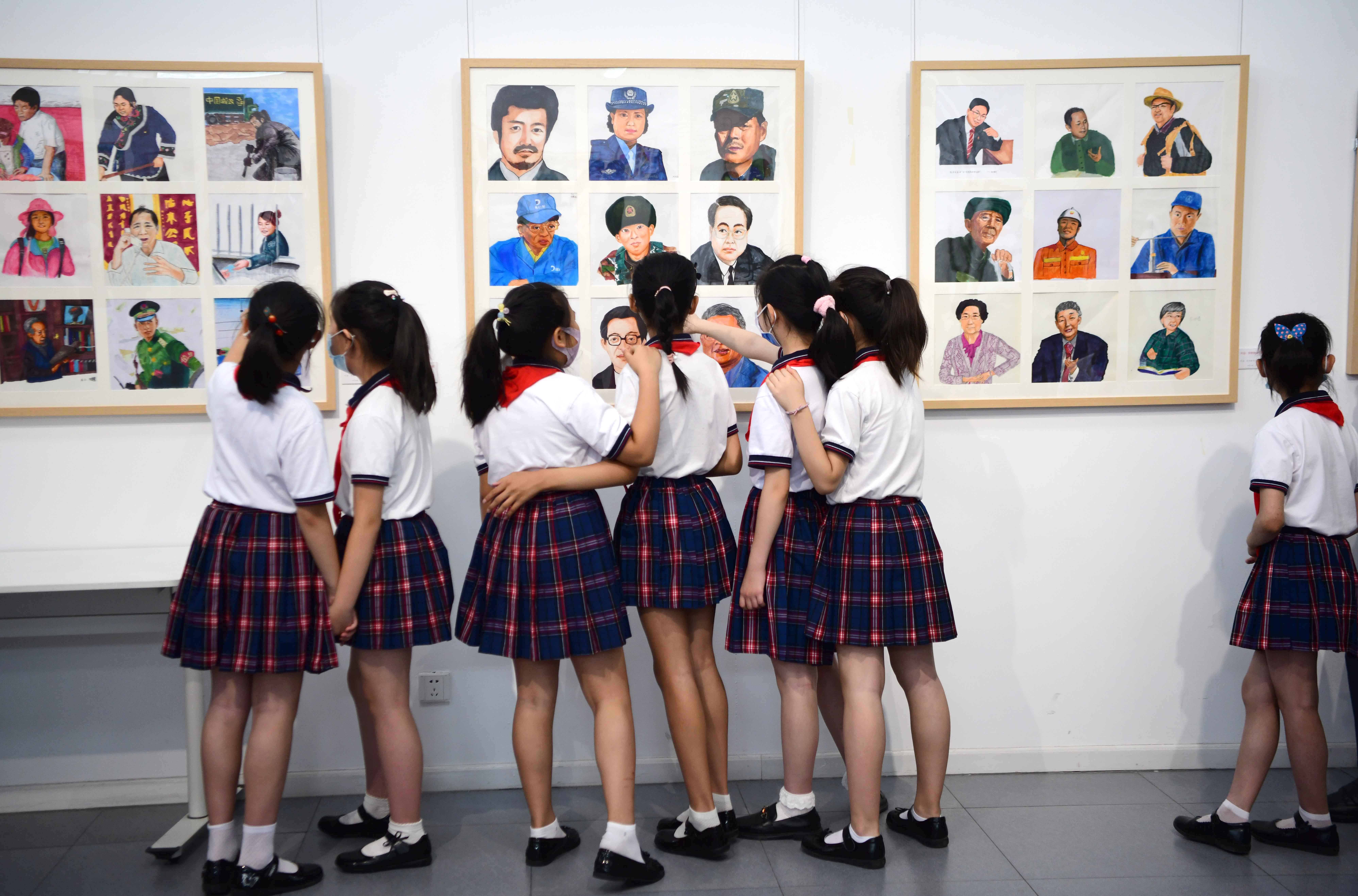 此次书画展展出了灯市口小学三至六年级学生的优秀作品,涵盖了北京中轴线、京剧、胡同、新时代模范人物、建党百年等主题,即日起在中国美术馆艺术教育空间展出。