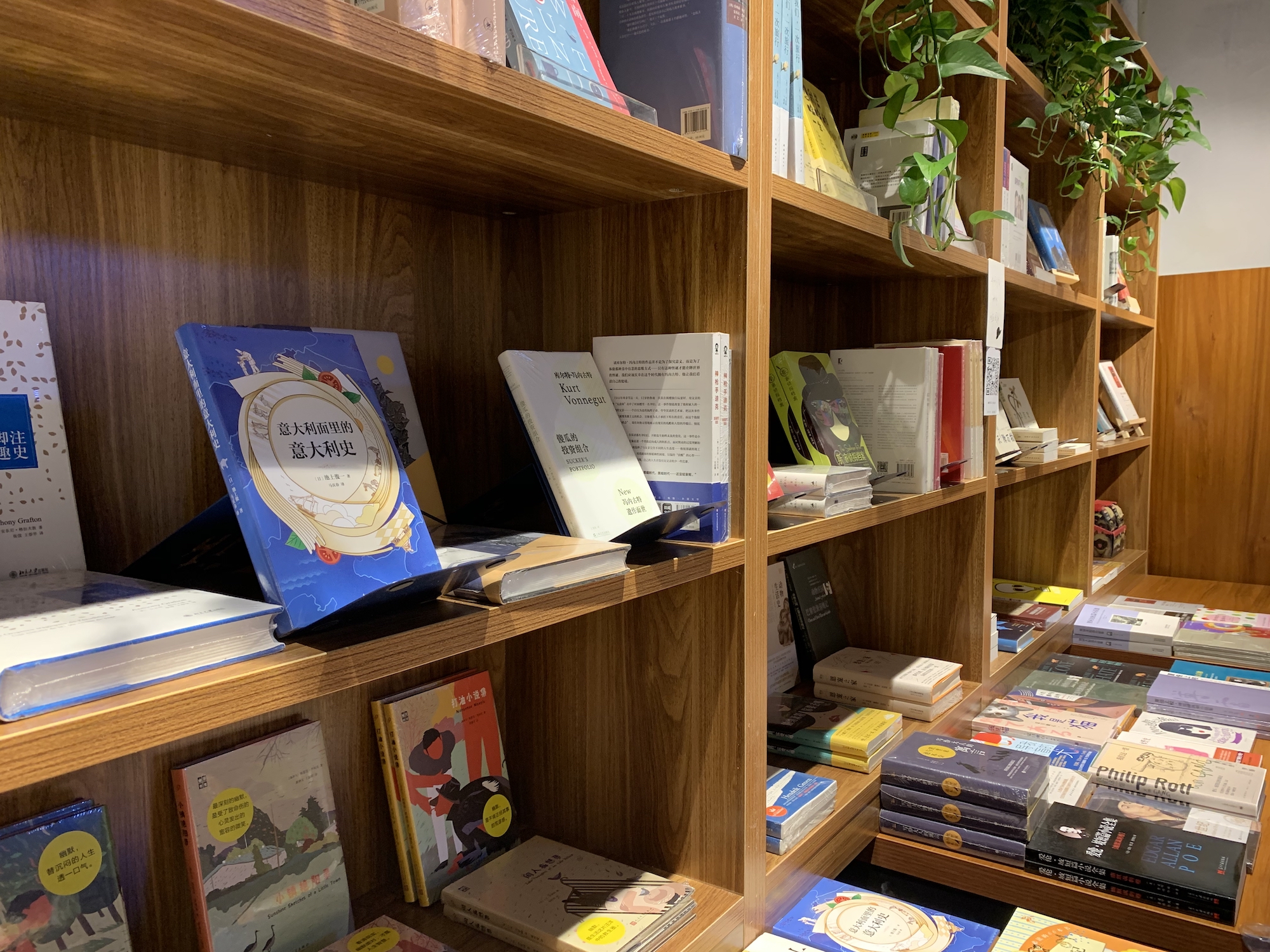 图书阅读空间分为五个部分,书架上贴着手写的分类标签,显示出书店特有的温度。 其中,在“中国作者创作幽默图书”板块,可以找到《侯宝林表演相声作品集》《方成自述》这些市面上难觅的老书,还会看到一些市面上比较火的书,比如《半小时漫画科学史》之类。而与之遥遥相望的是“外国作者创作幽默图书”板块,《爱伦·坡短篇小说全集》(幽默讽刺卷)、《大笑的警察》、《雄猫穆尔的生活观》这类别出心裁的图书显示出书店独特的选书观。