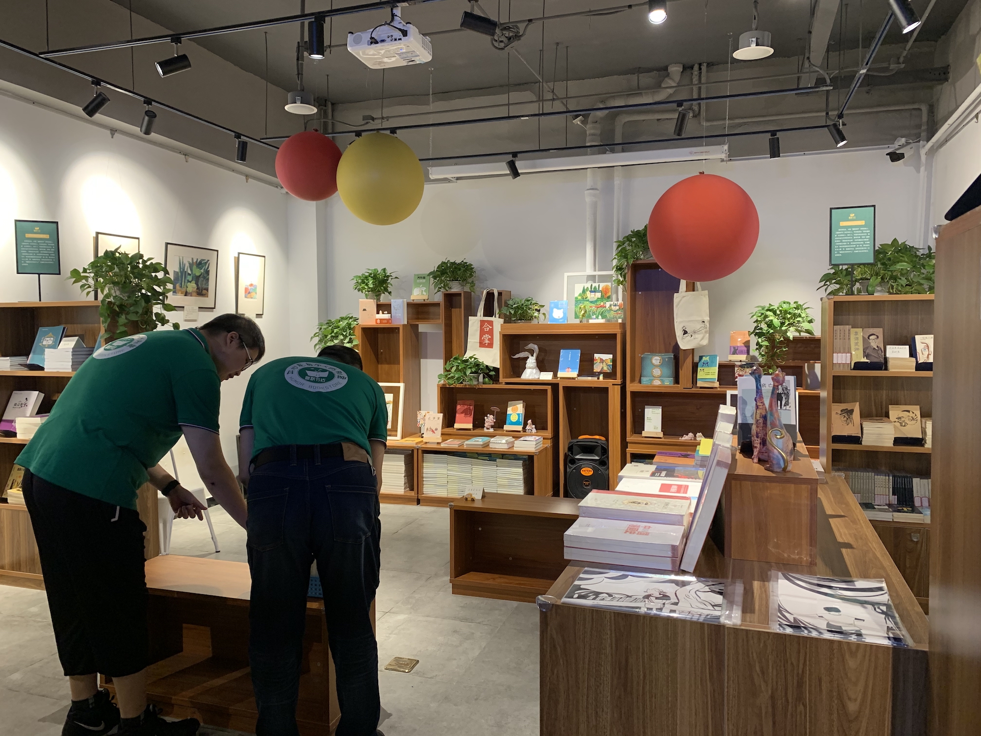 在书店的最里面,一个喜剧美学小型展览,以及一个小型漫画展已经开展。在岂航眼里,这一区域相当于唱歌的高音区,也是书店一个特色所在。