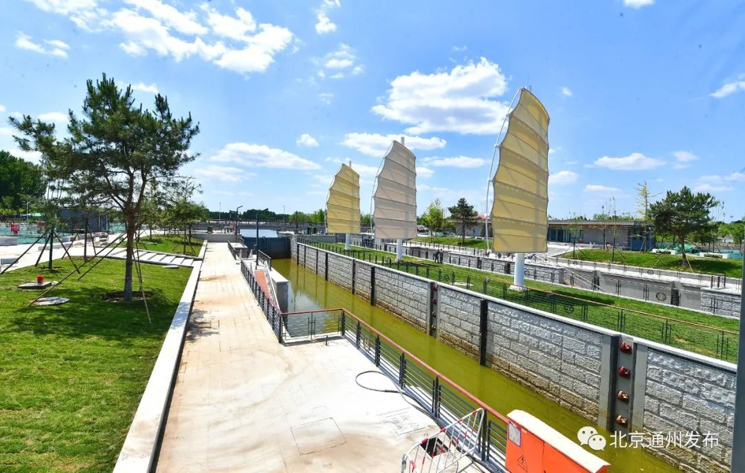 溯源漕运历史和运河文化,特别设计了这三座船帆造型的雕塑。一方面重现北运河昔日繁荣景象,另一方面成为船闸地标,让游客一看到这三座船帆,就知道榆林庄船闸到了。
