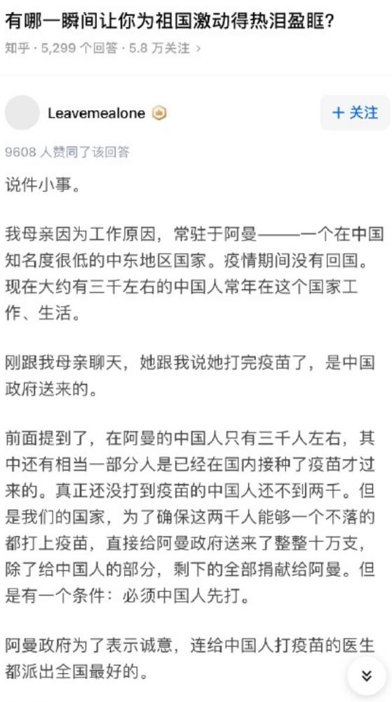 这两天,一条“必须中国人先打”的新闻刷爆了社交媒体。在中东国家阿曼,2000名尚未接种新冠疫苗的中国同胞在“春苗行动”中享受到了祖国送来的福利——中国捐赠阿曼的10万剂新冠疫苗,在中方要求下,由阿曼政府派出精锐医疗力量为在阿曼的中国公民优先接种。