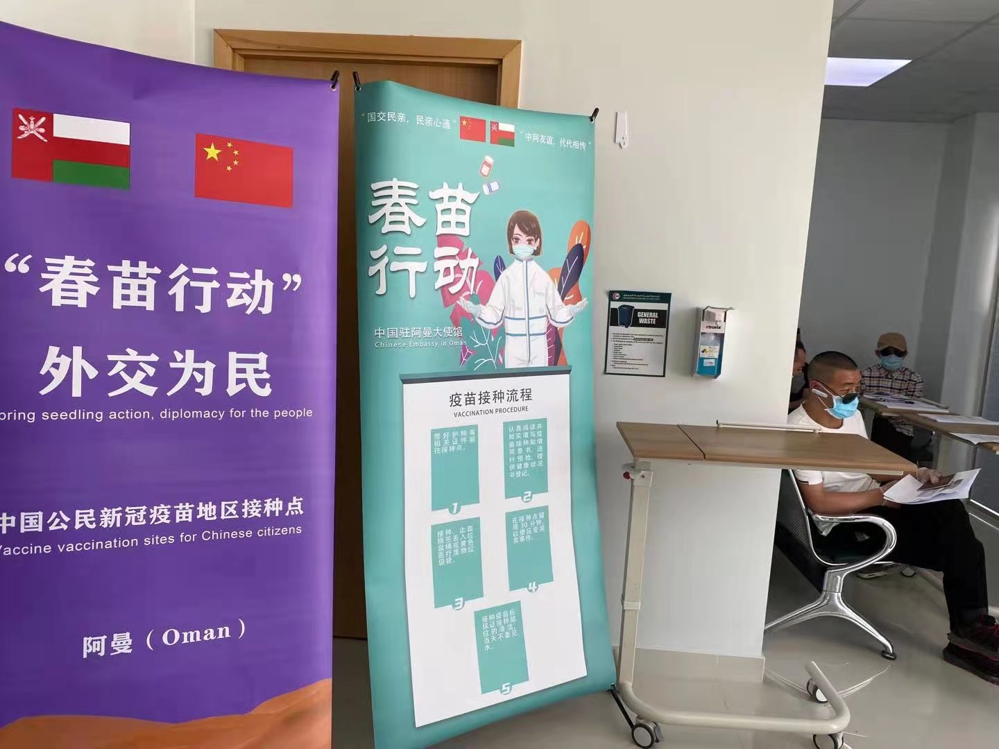 6月22日,李琳正好接种第二剂疫苗。她已经在阿曼工作大约一年时间。提起接种第一针时的情景,李琳仍然难掩激动,“医院门口放着‘春苗行动 外交为民’的中文招牌,看到了以后真是自豪感满满。医院里各种肤色的人都有,但只有中国人可以接种的那种昂首挺胸的自豪感,我感触特别深!”