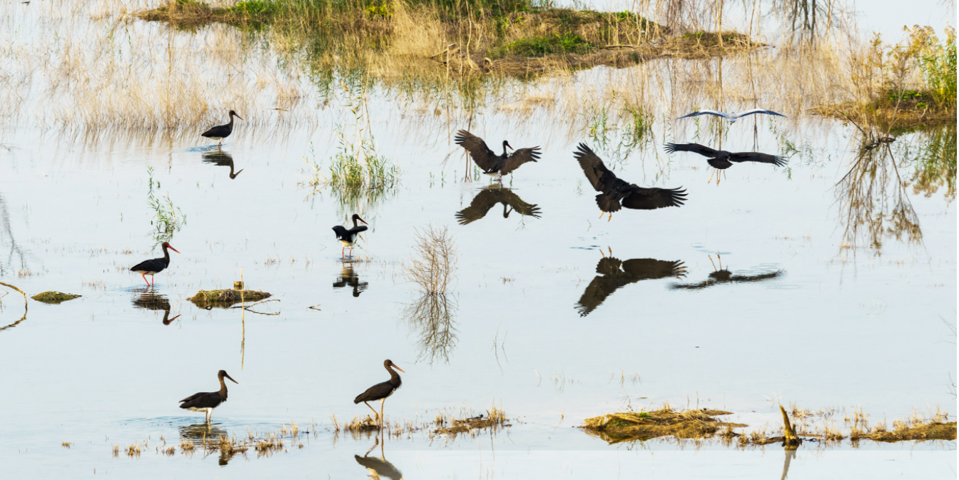 黑鹳是世界濒危鸟类之一,现存种群数量极少,也是我国一级重点保护野生动物,被誉为“鸟中大熊猫”。黑鹳的出现和长期生活,标志着永定河流域生态系统不断得以恢复。