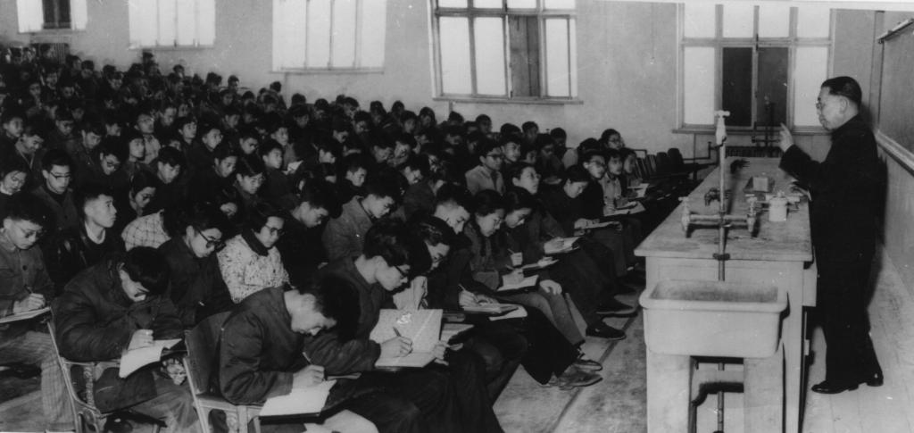 严济慈在给学生上课。新华社记者 楚英 摄