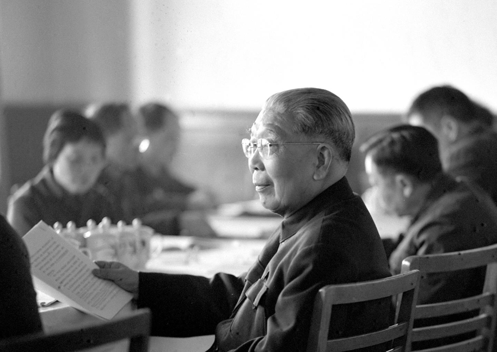 严济慈在全国科学大会的小组讨论会上。新华社记者 李基禄 摄