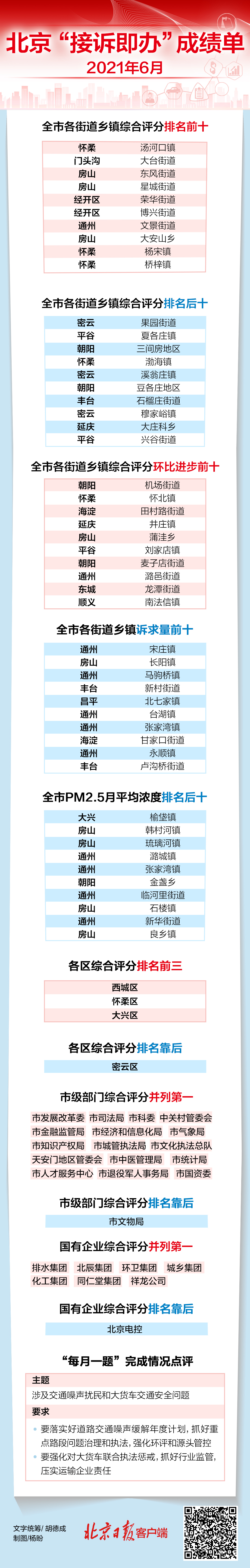 北京“接诉即办”6月份成绩单出炉,有你所在街道和单位吗?