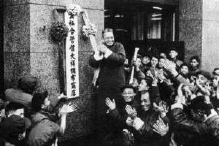 1956年,中国共产党在全国范围内完成对于农业、资本主义工商业和手工业进行的社会主义改造。这标志着我国基本上实现了把生产资料私有制转变为社会主义公有制,我国初步建立了社会主义的基本制度,从此进入社会主义初级阶段。图为1956年上海一家私有公司庆祝公私合营的场景。