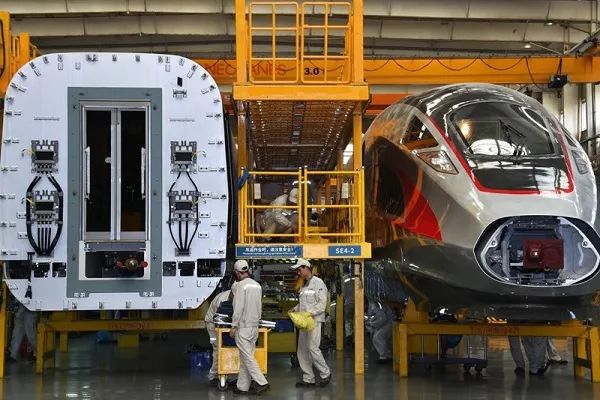 2018年5月10日,“复兴号”动车组在总装生产线上装配。(图片来源:国家铁路局)