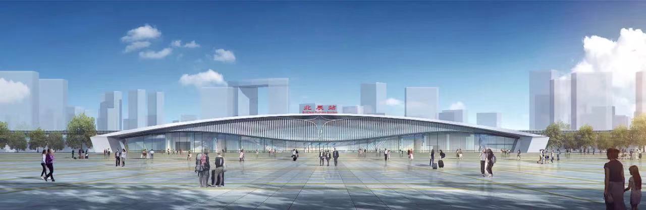 北辰站设计寓意为京津门户以包容的姿态欢迎各方来客。站房形体上的曲线如同河流的波浪,意将河流之水凝练成流线形态,彰显了高铁的流线与速度。