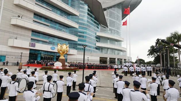 就在同一时间,香港的湾仔金紫荆广场举行了隆重的升旗仪式。新任政务司司长李家超首次以署理行政长官身份主持升旗仪式及庆祝酒会。