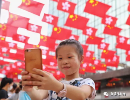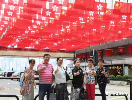 与此同时,香港的大街小巷到处是国旗的海洋,俨然一个红色的世界。不少香港市民 纷纷前来“打卡”、拍照,分享爱国热情。