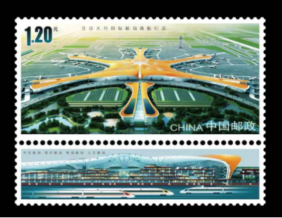 为纪念大兴机场通航,中国邮政于2019年9月26日发行《北京大兴国际机场通航纪念》纪念邮票1套1枚。