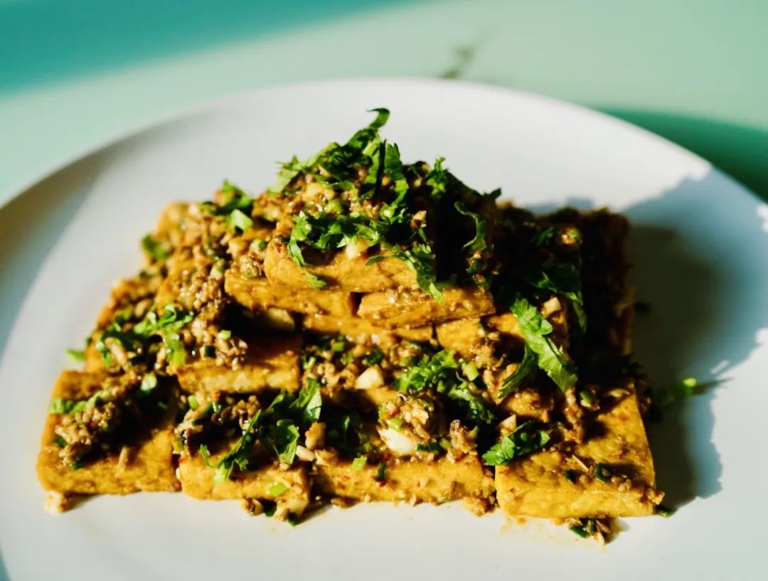 北京臭豆腐的外表呈浅灰色,看上去就很臭,闻着更臭,吃到嘴里却感觉绵软细腻,有独特的香味。作为一个北京土著,我家冰箱里的常备佐餐小菜绝对少不了王致和的酱豆腐和和臭豆腐,比之酱豆腐万物皆可抹,我私下觉得臭豆腐的出场更具仪式感。