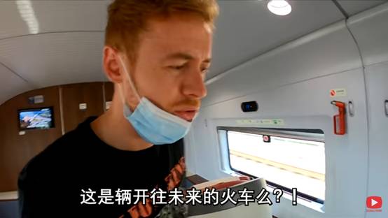 杰森还在视频中采访了另外一位外国小哥在中国坐高铁的感受如何。另一位小哥回答说:“我超级喜欢中国的高铁,真的特别赞,对吧?在高铁上办公特别方便,网也很好,座位也宽敞。”