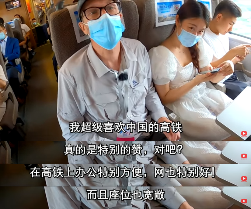 视频最后,杰森表示,“到目前为止,我挺享受这趟高铁的。”“整体给人的感觉特别好,而且这高铁特别安静,”他还自嘲说,“估计我是最讨厌的人,边走边拍,还自言自语。”