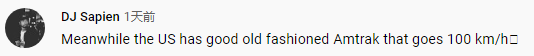 “与此同时,美国有老式的美铁,时速100公里每小时。”