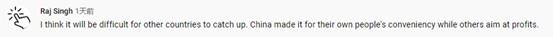“我认为其他国家很难赶上。中国为自己的人民提供方便,而其他国家则以利润为目标。”
