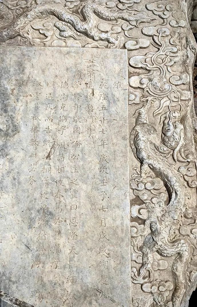 在墓葬发掘区西部发现明清时期水井两座,房址一处。在墓葬发掘区南部约30米处,发现乾隆谕祭驮龙碑一座,已断为三截。驮龙碑碑文一面有“科尔沁和硕毅亲王固伦额附色布腾巴尔珠尔碑文”字样,落款为乾隆四十一年,另一面有“谕祭于和敬固伦公主之灵”字样,时间为乾隆五十七年。碑文明确为固伦和敬公主及额驸色布腾巴尔珠尔谕祭碑。