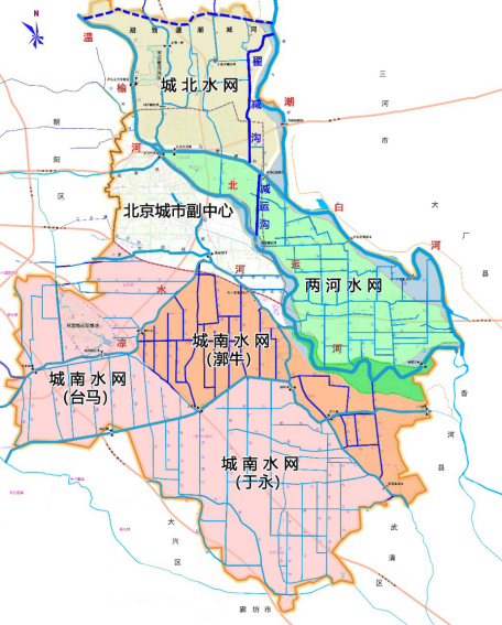 《北京城市副中心(通州区)国民经济和社会发展第十四个五年规划和二〇三五年远景目标纲要》提出,实施城南水网、城北水网、两河水网治理工程,持续完善“三网、四带、多水面、多湿地”水系格局。