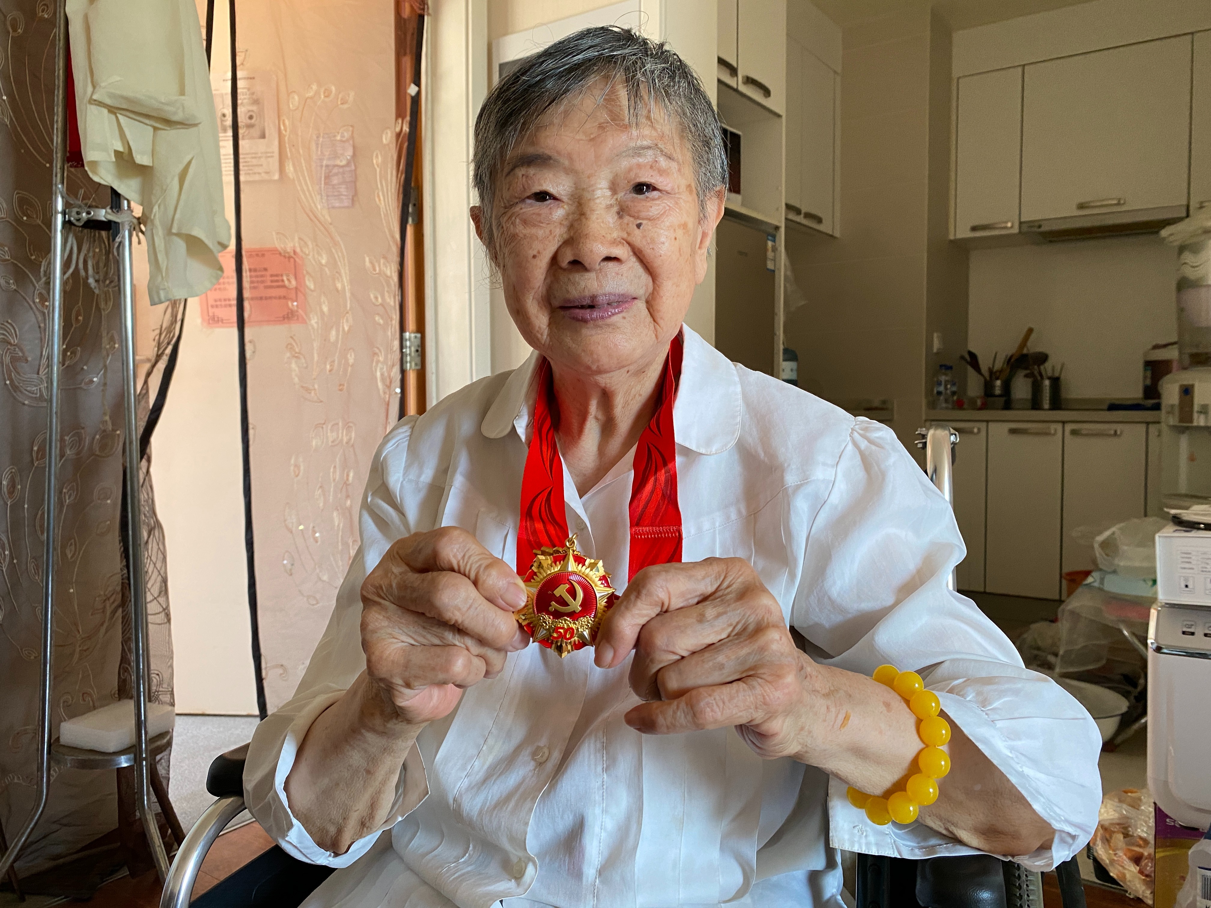 1954年入党的宋允蘅今年已经86岁了,目前正在燕达金色年华健康养护中心颐养天年。前几天,为了庆祝建党百年,养老院举办了红色主题文艺汇演,包括宋允蘅老人在内的老党员们收获了“光荣在党50年”纪念章。
