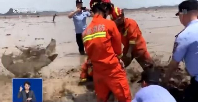 中国科学院水生生物所副研究员 郝玉江:一定要保证动物正常的呼吸,所以一定要把动物的身体摆正,让它的呼吸孔朝上。另外就是因为鲸类是水生动物,它没有支撑身体的强大的四肢,实际上它的胸腔腹腔承受很大的压力。所以这个时候一般尽可能在浅水里边,让它有一定的浮力来支撑它的身体。