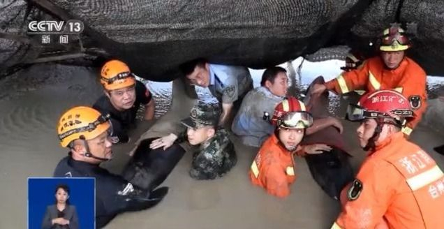 7月6日,浙江台州临海头门港出现了12头瓜头鲸集体搁浅。经过数十小时的紧张救援,它们当中的6头被成功放生,5头不幸死亡,目前还有1头身体虚弱,仍在一家海产品公司的养殖塘内接受救治。