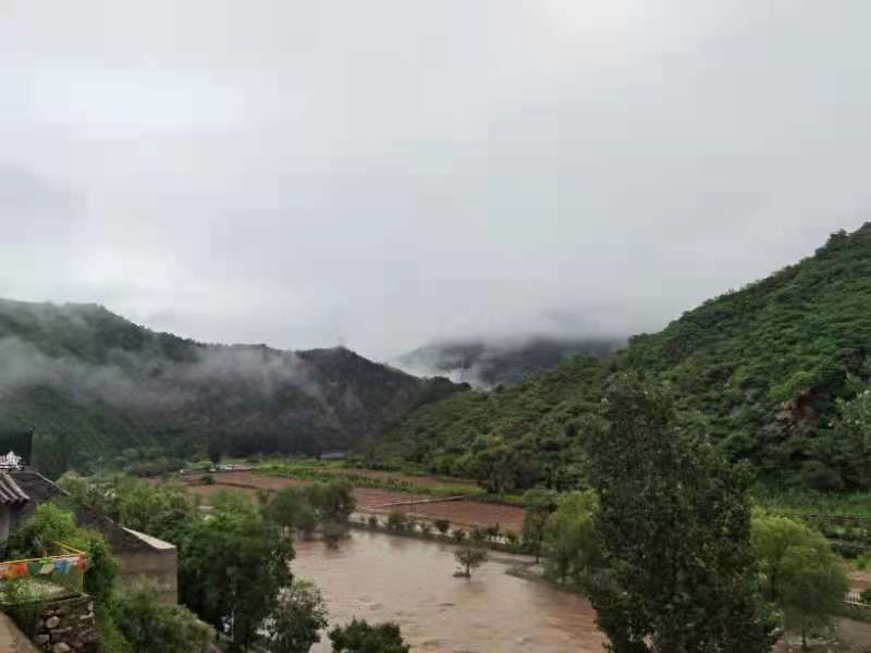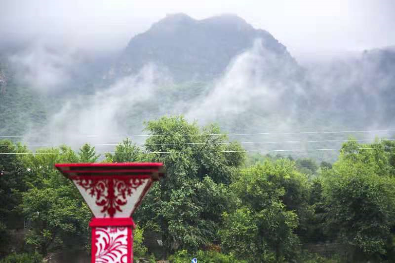 一场连绵的大雨过后,13日早上一起来,怀柔的大山里绿色格外青翠。而在山峦之间,白色的云雾缭绕其间,山下河水暴涨,耳边是湍急欢快的流水声,眼前是飘忽的云海,脚下的路上还有野鸡、野兔、小松鼠出没,恍若仙境。