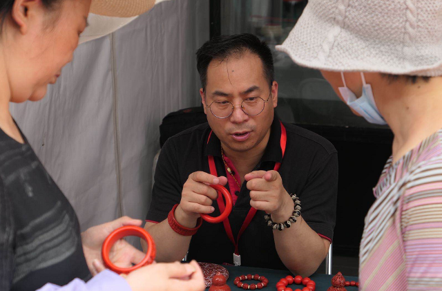2021年是《中华人民共和国非物质文化遗产法》颁布实施十周年。今年“文化和自然遗产日”非遗宣传展示活动主题为“人民的非遗人民共享”。作为传播和传承我国民族、民间、民俗文化的重要载体,“非遗”文化早已在潘家园安家落户、生根发芽。据统计,如今在潘家园旧货市场内经营国家级、省级和地市级非物质文化遗产作品的商户多达1298家,其中经营国家级非遗作品的商户就有1048家,经营省级或地市级非遗作品的商户有250家。