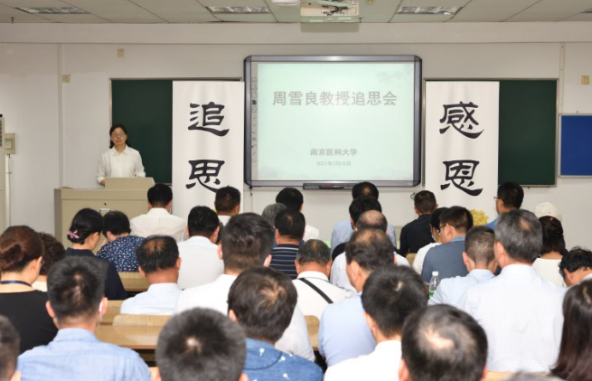 追思会于今天上午10点30分在南医大善至楼209教室举行。现场通过视频回顾了周雪良教授的生平,全体人员默哀一分钟,寄托对周老的哀思。