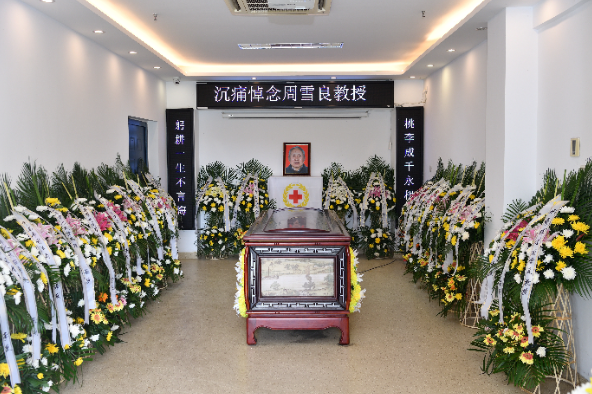 南京医科大学党委书记王长青、徐州医科大学副校长蔡红星、南京市公安局刑科所主任张飚、周雪良教授的亲属及生前同事学生、法医学系、人体解剖学系全体教师及学生代表来到现场吊唁,参加周雪良教授的追思会和遗体告别仪式。教育部高等学校法医学类教学指导委员会、中国法医学会、江苏省司法厅、江苏省司法鉴定协会、江苏人民检察院、江苏省高级人民法院、各地公安局、司法鉴定所、各兄弟高校法医学系等单位献上花篮,以示哀悼。