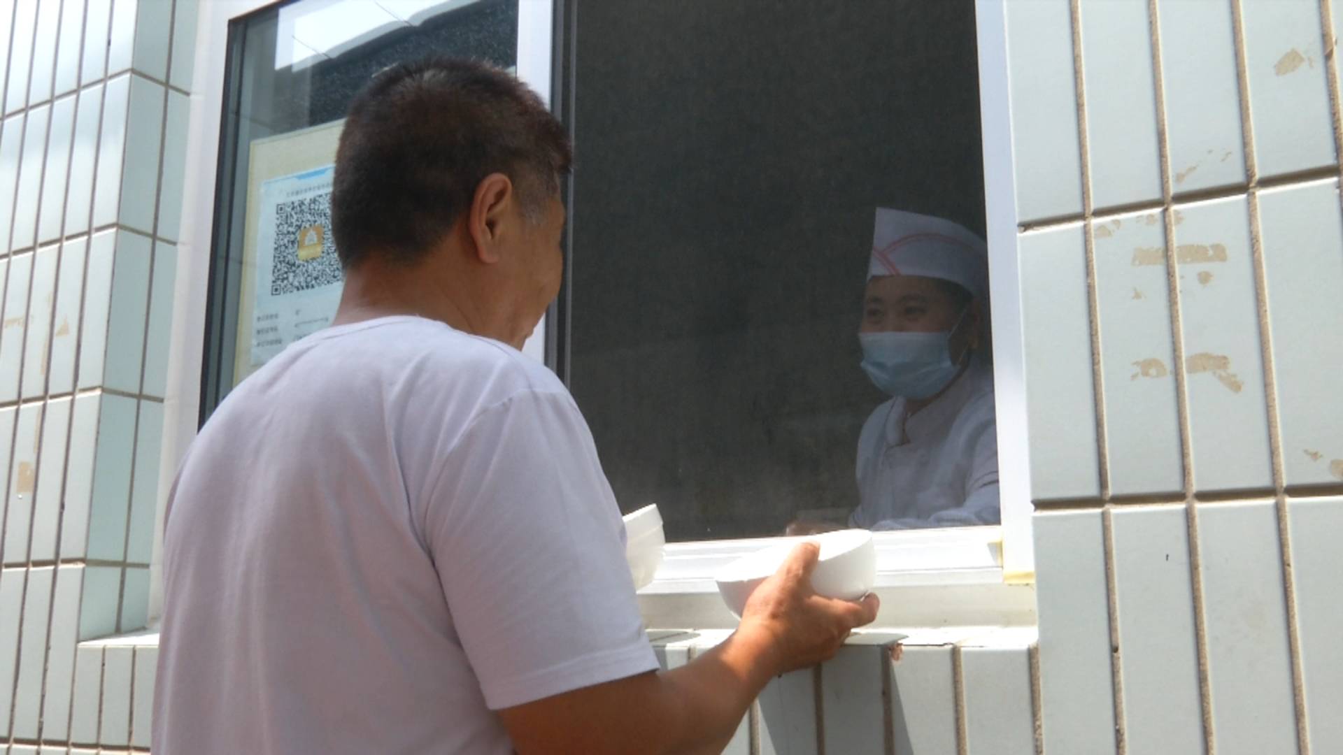 正午时分,记者在安家庄村老年驿站看到,几名村民带着自家的饭盒在食堂窗口前排好队伍,等待打完饭菜回家享用。