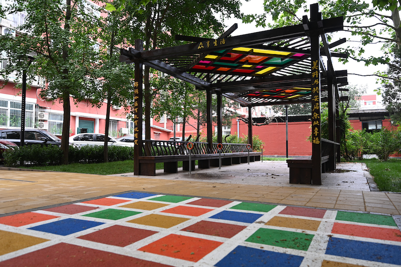 “小花园里只有一座凉亭,四周安装了一圈座椅,大人能在这儿坐坐,聊聊家常,但小朋友可就没处玩了。”垂杨柳东里社区工作人员说,小花园是这次改造的重点,设计团队在小花园里设计了儿童活动区,安装了可移动篮球架,让孩子们有了玩乐的专属空间。