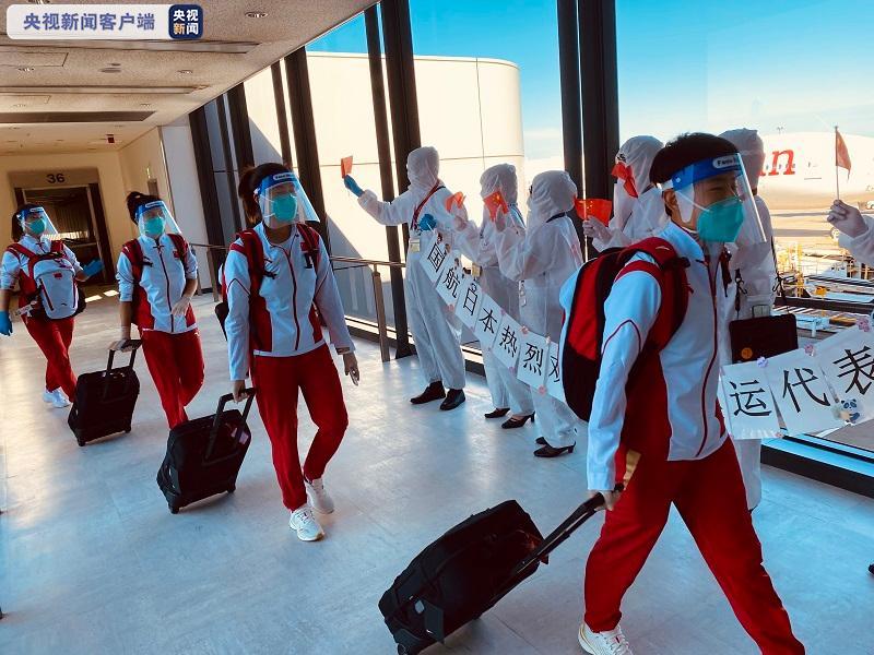 参加东京奥运会的中国体育代表团第二批成员17日飞抵日本成田机场,这批出征的队伍包括中国乒乓球队、女足、射箭和赛艇队。