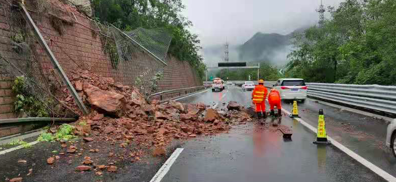 7月18日一早,京藏高速公路山区路段发生局部滑坡,山石滚落至高速主路,影响到主路交通。经过7小时雨中紧急清障,路段已于下午开放交通。