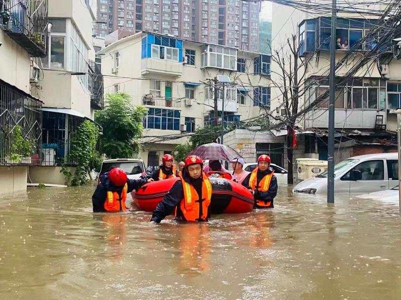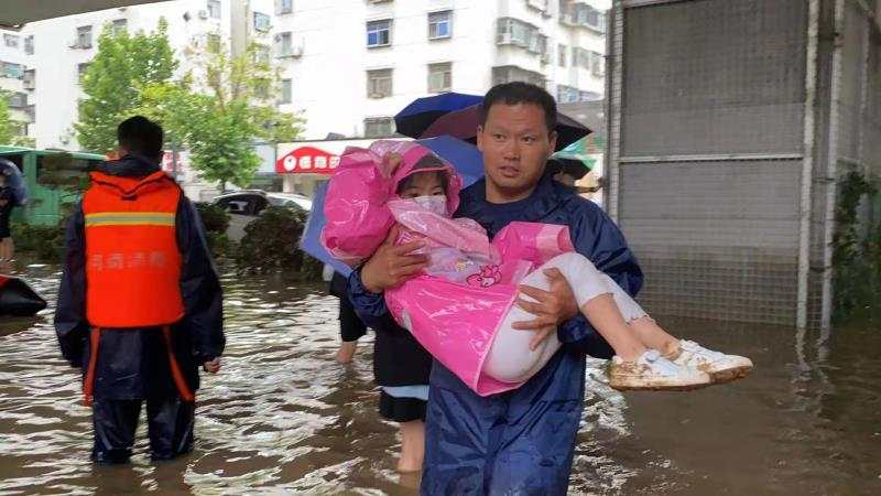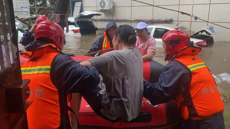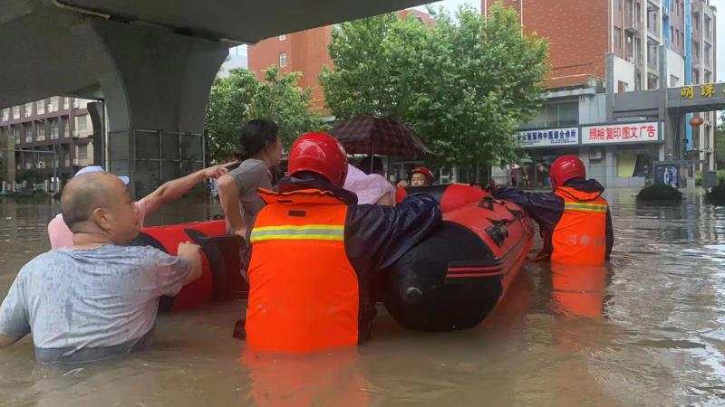 7月21日凌晨5:12分新乡支队抗洪突击队接到上级命令,沙口路二环道交叉口往南一公里路东面粉厂家属院有老人和孕妇被困,6:40分转移一名足月待产孕妇及一名年上年过九旬瘫痪在床老人等一家五口。
