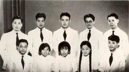图:1936年清华大学物理系同学毕业合影,前右1于光远,右2何泽慧,后左1钱三强,前左1王大珩。
