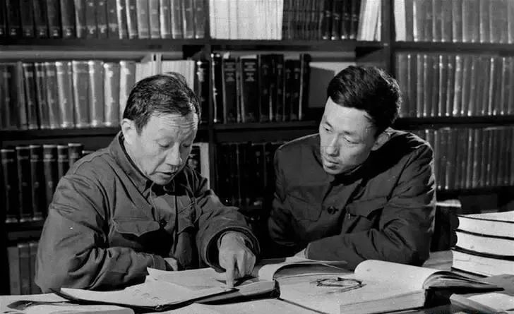 图:王大珩(左)与他的学生蒋筑英在研究工作
