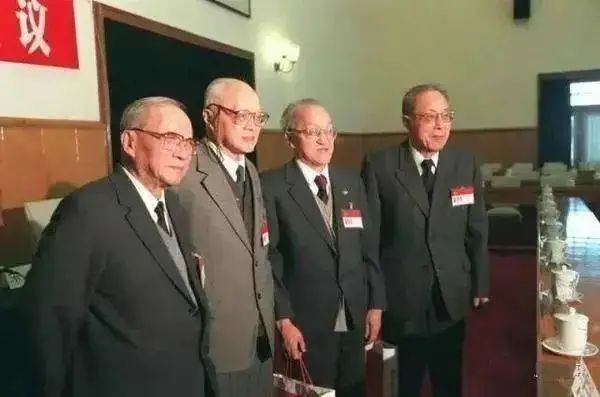 图:杨嘉墀、王大珩、王淦昌、陈芳允在“863计划”十周年纪念会议上合影