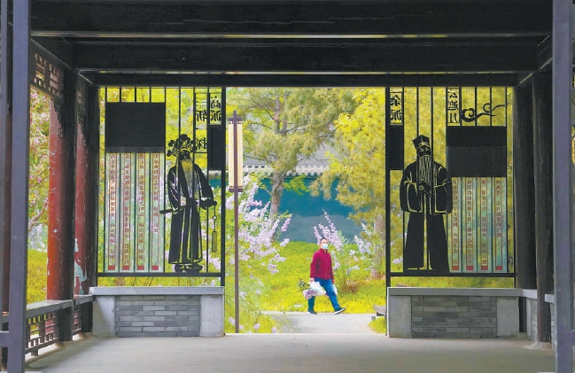 利用纪晓岚故居西侧腾退空间改造的“京韵园”口袋公园古香古色,处处显现着京腔京韵的传统艺术魅力。